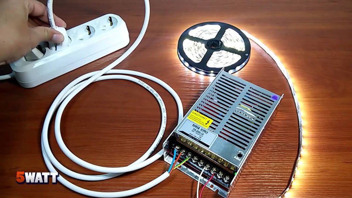 Подключение светодиодных лент может быть выполнено двумя способами: непосредственно к питающей сети и посредством установки блока питания.