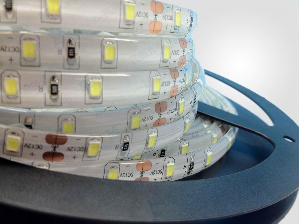 • 3528 – имеют небольшой световой поток (около 5 лм на светодиод) и применяются в декоративных целях, так как не светят достаточно ярко. • 5050 (5060) – распространенный тип светодиодных лент, который отличается крупным размером светодиодов и выдает свечение в 12-14 лм на один светодиод. • 2835 – ленту с такими диодами применяют для организации основного освещения, так как они имеют высокую яркость (около 25 лм), а вот в декоре такие варианты практически не применяют. • 5630 – самые яркие светодиоды, которые используют для освещения всех типов помещений. Диоды могут выдавать до 75 лм и при работе сильно нагреваются. Для защиты от перегрева их монтируют на специальных теплоотводящих пластинах из алюминия или другого теплопроводного материала.