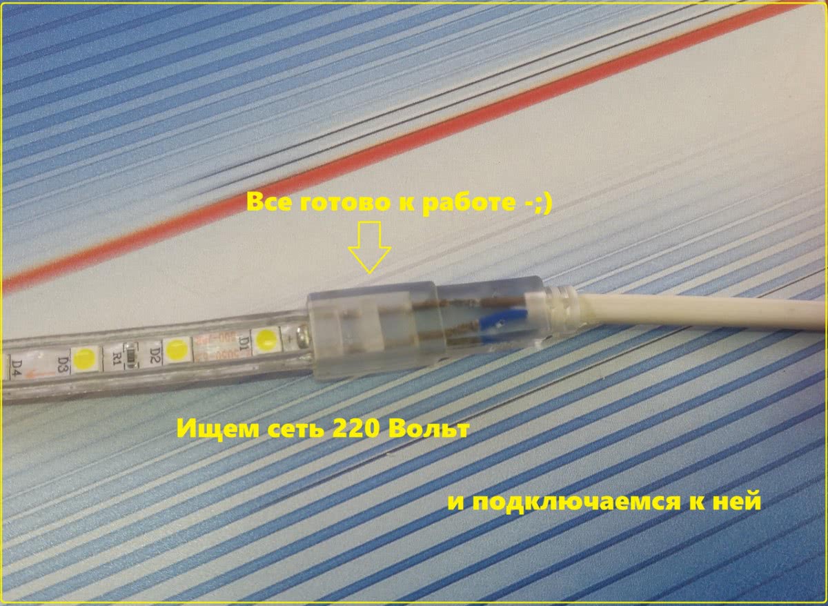 Наиболее простым способом является использование LED-коннектора. В этом случае контактный конец ленты прикладывается к контактам коннектора, после чего закрывается крышка. Но такой вариант более более дорогой и менее надежный, как пайка.