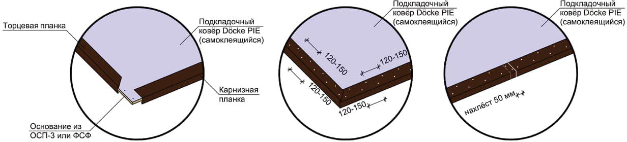 систему непосредственно на подкладочный ковёр с нахлёстом друг на друга не менее 50 мм.