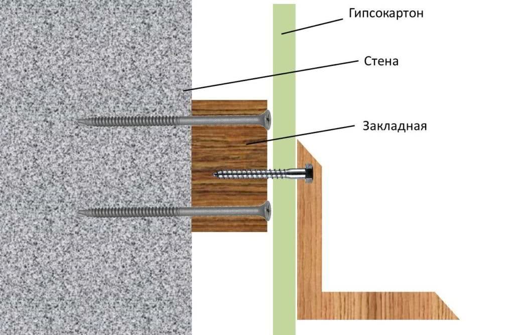 Более надежным и безопасным для материалов способом считается использования закладных, которые устанавливаются на стене еще на этапе проектирования. Их роль могут исполнять брус, металлопрофиль и т.д.