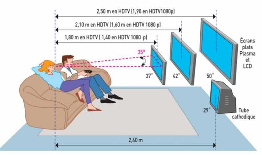 Чем больше диагональ экрана, тем дальше должны быть расположены диваны, кресла и стулья. Поэтому в маленькую комнату не рекомендуется приобретать большие плазмы. Даже несмотря на то, что разрешение таких экранов довольно велико, и они практически не вызывают усталости глаз, неудобства возникают при охвате зрением всего экрана.