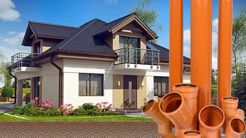 - Полимеры. Диаметр элементов канализации составляет от 40 до 200 мм. Как правило, внутри дома используют элементы с сечением 40, 50 и 110 мм. Наружный коллектор монтируют из труб большего сечения.