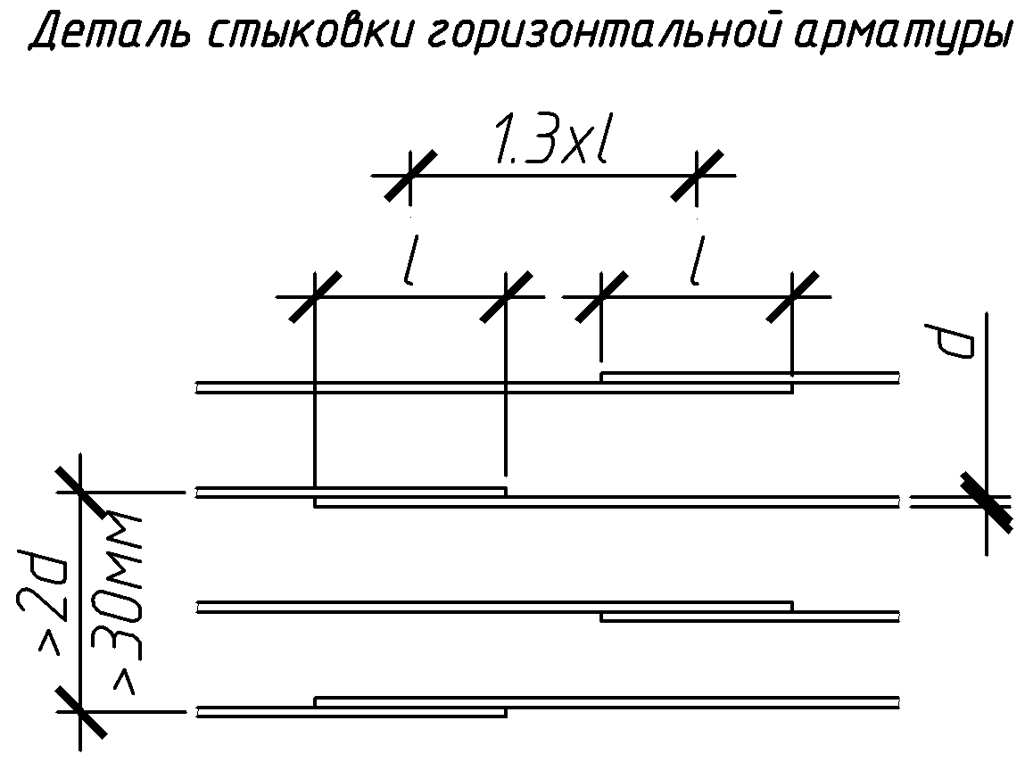 При этом расстояние разбежки, как определено в нормативных документах, должно быть не менее 130% длинны стыковочного соединения стержней.