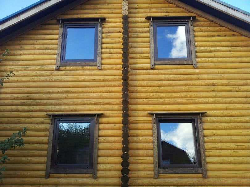 - Эстетичная. Еще одна характерная особенность оконных проемов в экологичных домах – компенсационная щель, которая появляется между стеной и рамой. Набивка под срубом выглядит неэстетично, поэтому наружные обрамления помогут скрыть все недостатки.