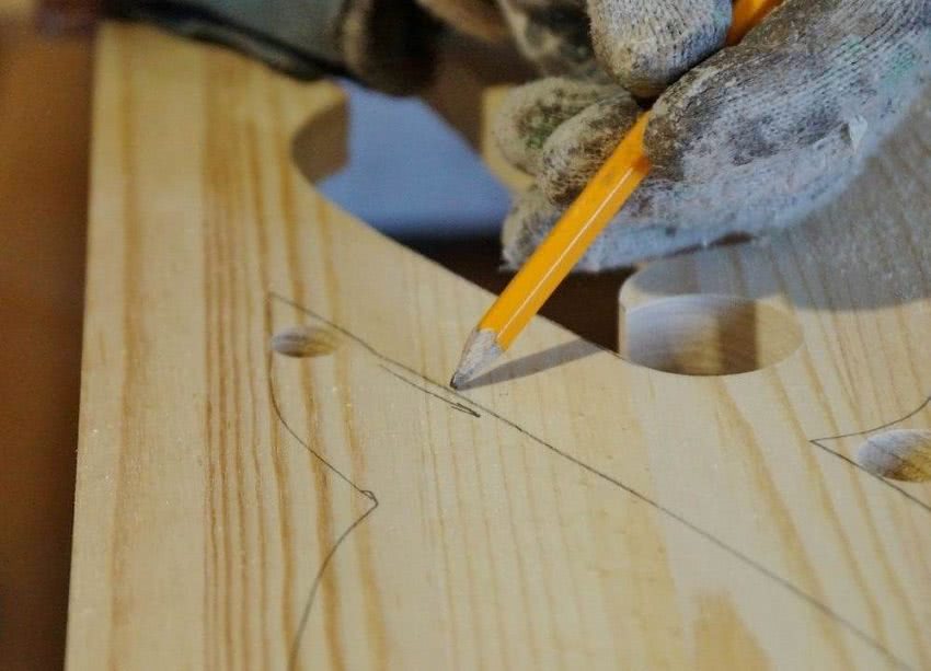 - Через копирку перенести линии на тонкий лист фанеры или ДВП и выпилить электролобзиком.
