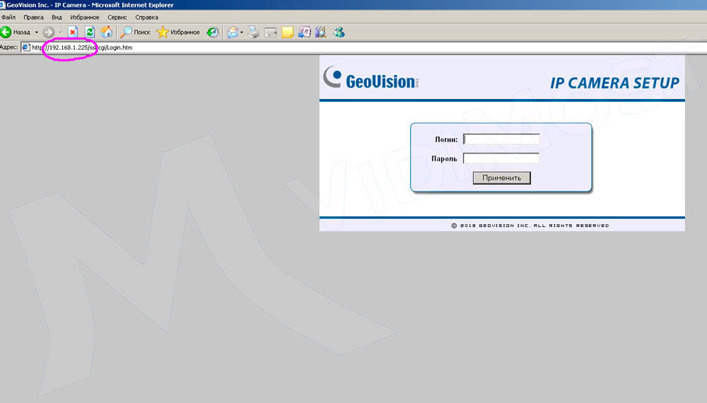 1. Входим в веб-интерфейс ip-камеры указав ее ip адрес в адресной строке браузера (для примера мы использовали Internet explorer, та как в нем присутствует больше настроек.