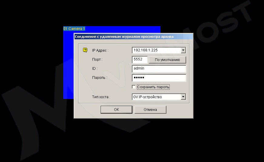 7. Вводим IP адрес камер, ID и пароль, тип хоста — «GV IP-устройство»