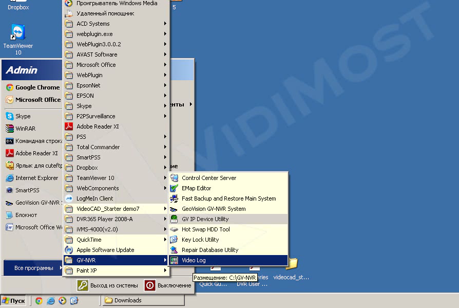 5. Для просмотра архива нужно запустить утилиту «video log» которую Вы можете скачать на файловом сервере.