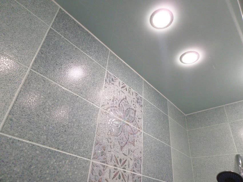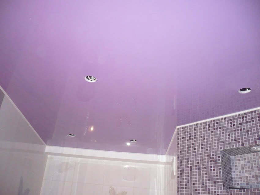 При выборе такой потолочной конструкции для ванной комнаты необходимо учитывать, что фактура полотна играет существенную роль. Глянцевые и матовые потолки нередко заметно отличаются между собой даже при наличии аналогичного оттенка. Первые полотна являются более подходящими для ванных комнат небольших размеров. Ввиду способности осуществлять отражение света они способны визуально увеличивать помещения и создавать видимость, словно потолок находится на большем удалении от пола