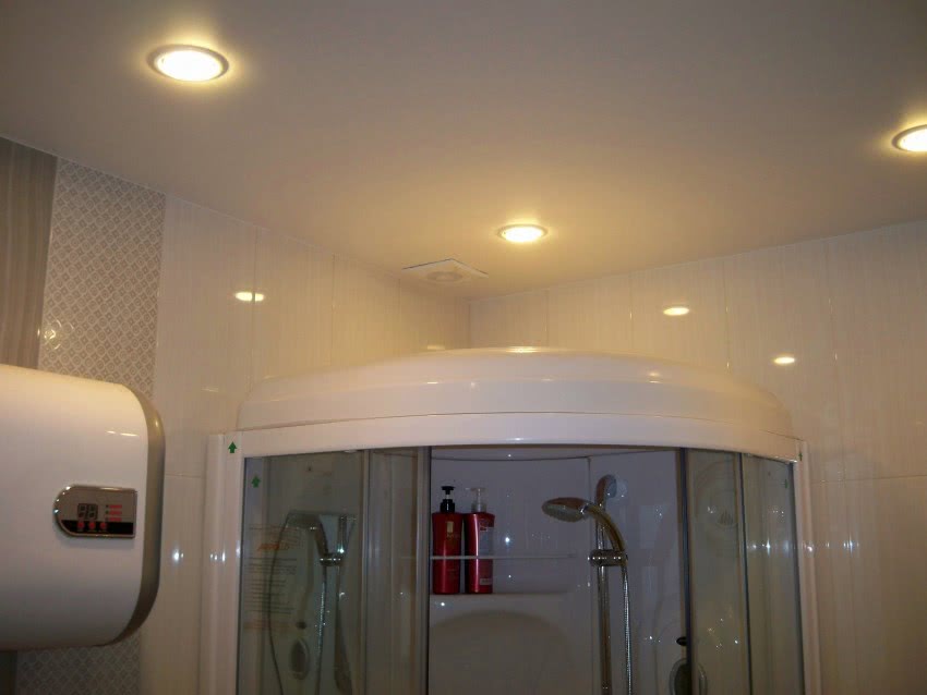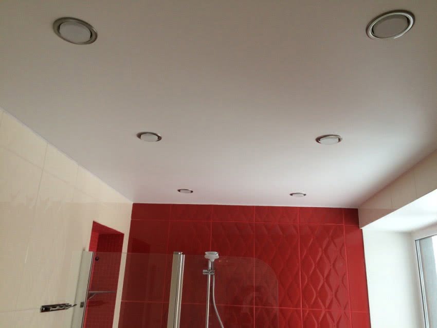 В условиях ванной комнаты, где часто наблюдается повышенная влажность и высокие температуры, в невентилируемом запотолочном пространстве быстро собирается конденсат, что вызывает появление плесени и гнили. Однако этот недостаток легко устранить – достаточно установить в натяжном потолке вентиляционные решетки и проблема циркуляции воздуха за натяжным потолком решится.