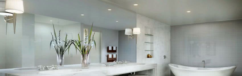 - Отсутствие надобности предварительно выравнивать основное перекрытие для установки натяжных потолков в ванной.