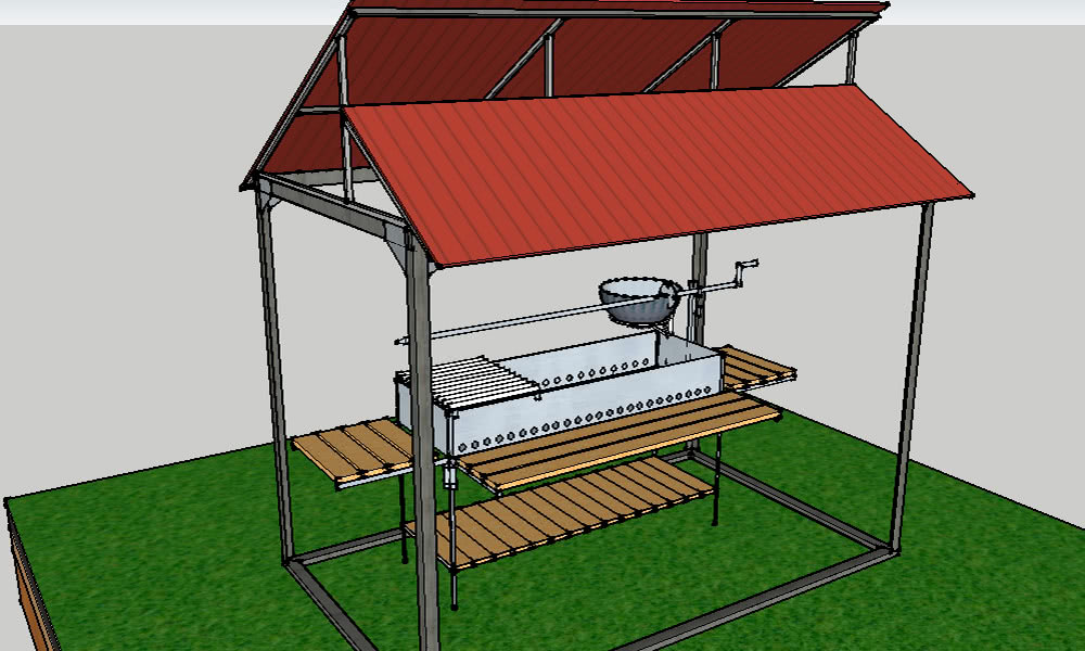 Правда, у металла есть несколько недостатков. Первый – стоимость. Второй – сложность создания накрытия своими руками. Третий – без должной защиты металл может поржаветь. Четвертый – металл будет нагреваться не только под воздействием огня от печи, но и от лучей солнца. Пребывать под таким накрытием будет проблематично. Вот почему чаще всего конструкции из металла делают только как укрытие для углей.