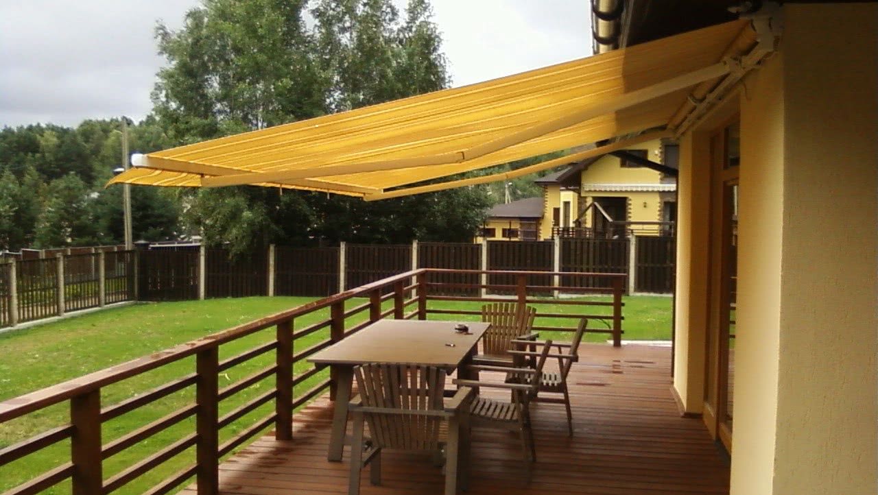Это навес над террасой, который оборудован механизмом, отвечающим за раскрывание ткани. Он может быть частично или полностью зарытым. Поэтому можно