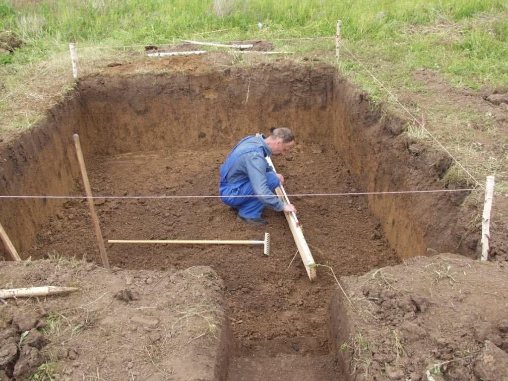 - Котлован правильной геометрической формы, с отвесными неосыпающимися стенками, такой как на фото снизу – лучший вариант для земляного погреба. Его стандартный размер: 2*2м, при такой же глубине. Но если он не сможет вместить весь объём урожая, ничто не мешает увеличить размер погреба.