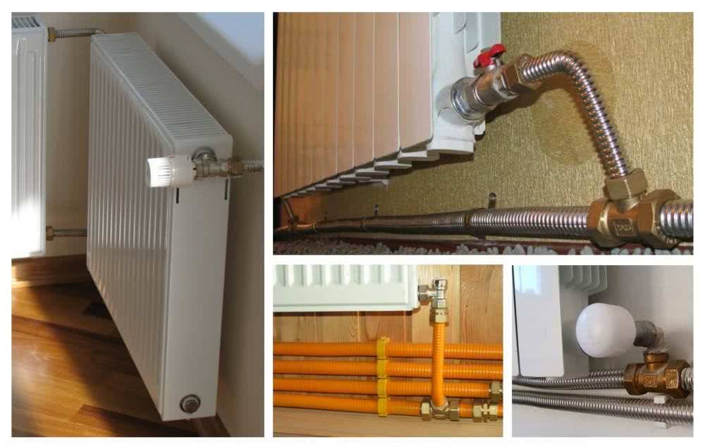 Подключение радиатора к системе отопления с помощью гофрированной трубы