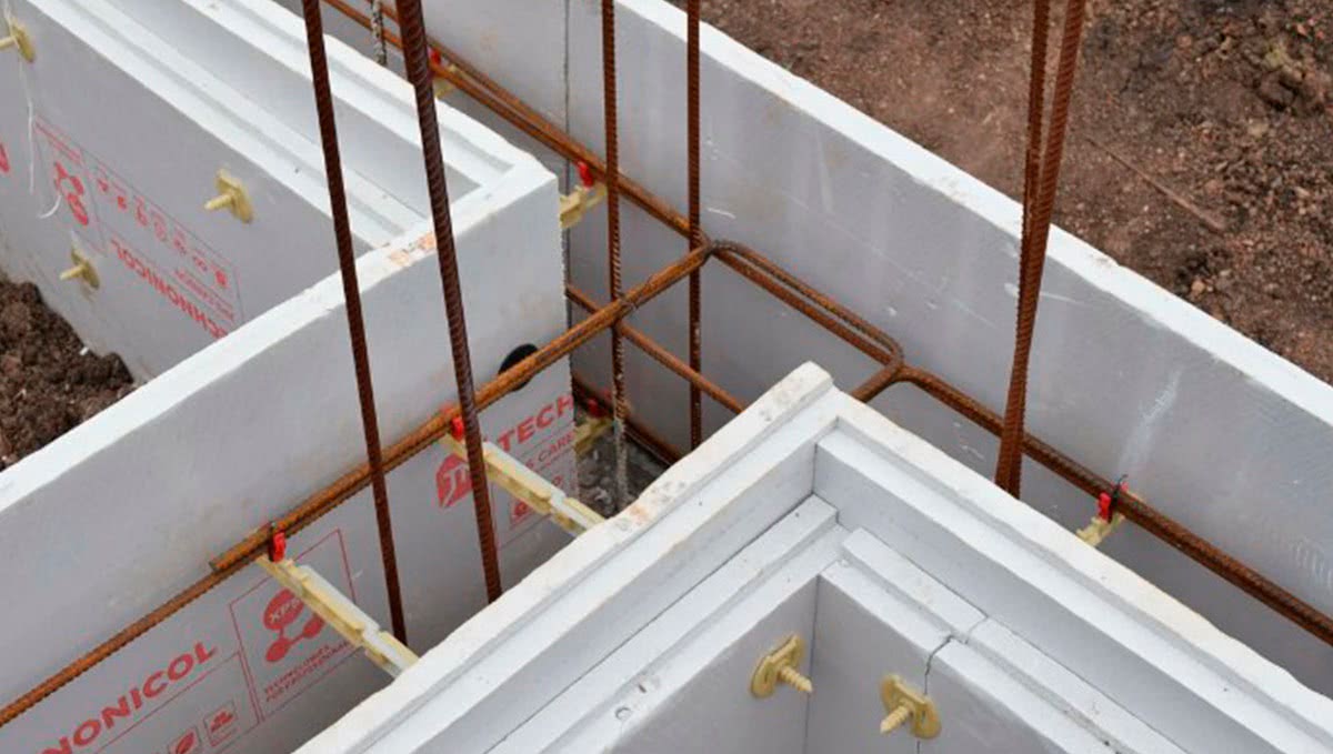 - За счёт слоёв пенополистирола, стены фундамента получаются уже утеплёнными. Толщина утеплителя у этих блоков может быть как 50 мм, тик и 100 мм, и можно выбрать именно тот вариант, который лучше подходит для местного климата.