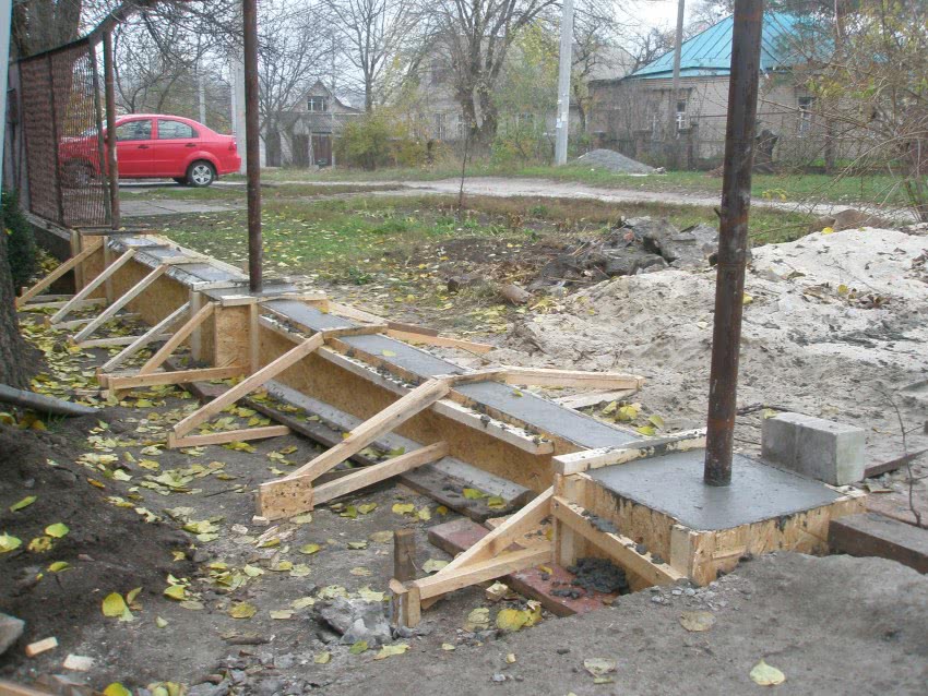 Заливают в конструкцию цементно-песчаную смесь (бетон), при этом важно следить за равномерностью его распределения внутри опалубки. Не допускайте появления воздушного пространства.
