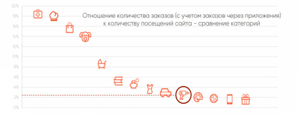 Средняя конверсия в покупку в секторе стройматериалов – 2,8% (Data Insight). То есть из 1000 посетителей сайта покупку совершают 28 посетителей.