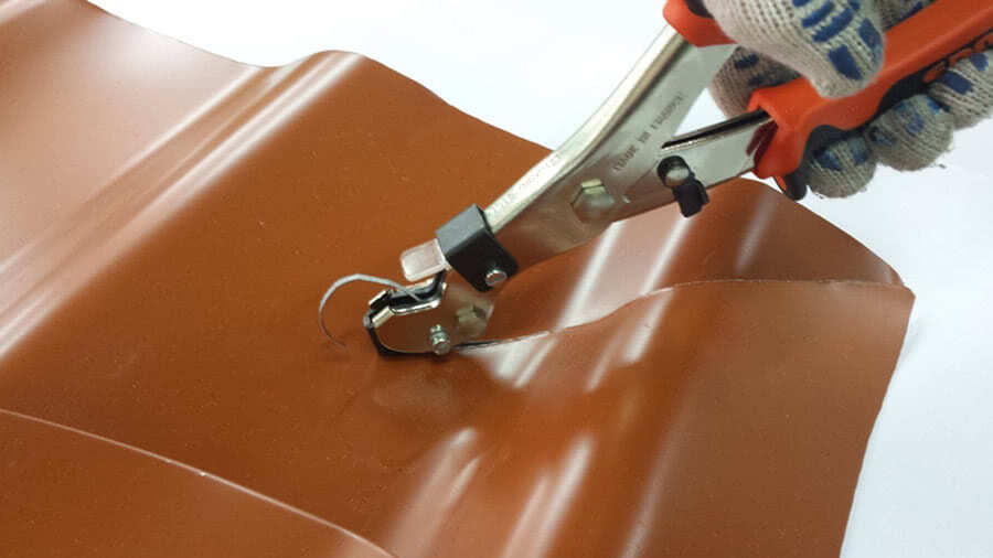 Профиль черепицы допускает поворот до 90⁰, поэтому использование обыкновенных ножниц для резки листового материала довольно затруднительно, высеченные – с этой задачей справляются намного проще