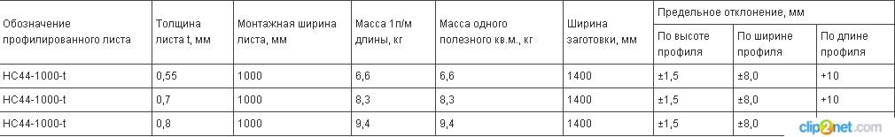 При выборе профнастила необходимо обращать внимание на его геометрические параметры. Для профиля Н44 они следующие: