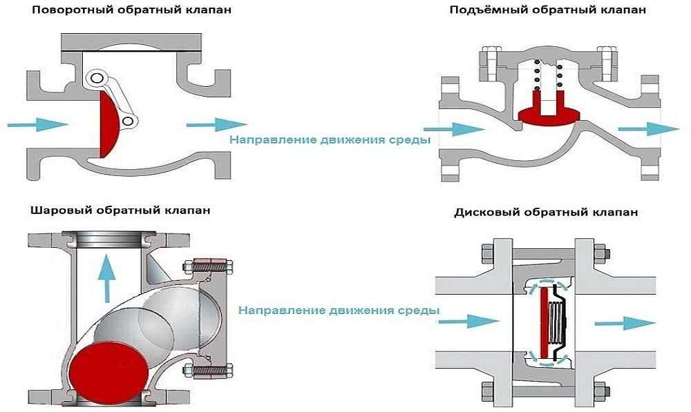 Имеется очень и очень много видов обратных клапанов. Для использования в бытовых целях применяются: