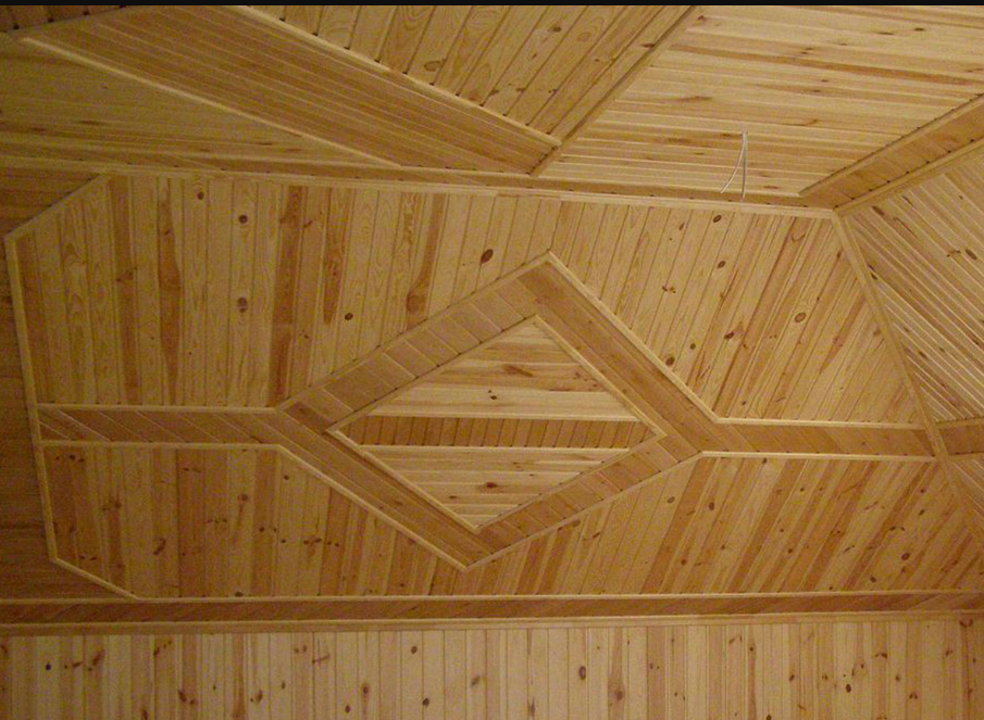 Обшивать деревянными панелями потолок несколько сложнее, поскольку без помощи одному стравиться нереально. Сложно точно выставить ламели, надёжно зафиксировать, учитывая значительный вес одного полотна, если его длина более 5 м. По аналогичной схеме, как и для стен, производится расчёт требуемого материала и длины составляющих конструкции. Реже применяются специальные финишные гвозди, чаще — саморезы, которые обеспечат более надёжное крепление облицовки.