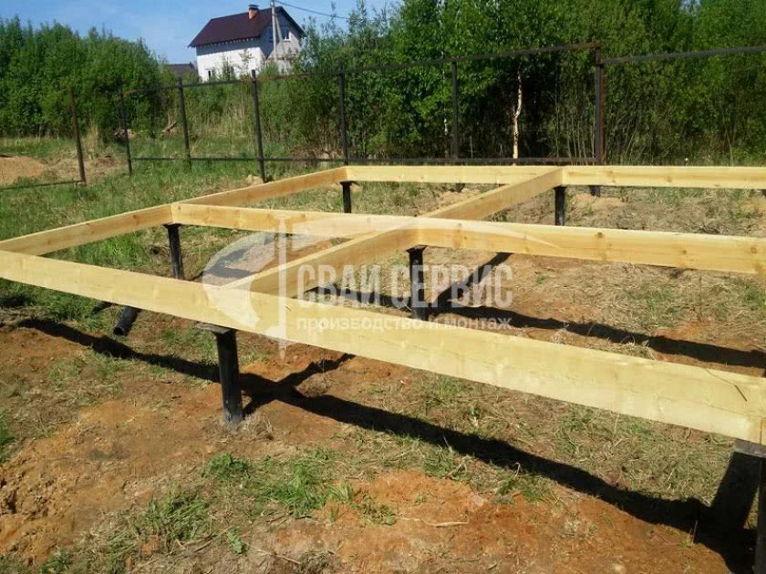 - Металлический каркас приваривают к сваям и заливают опалубку бетоном.