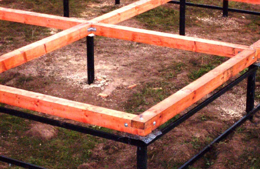 При обвязке свайно-винтового фундамента брусом делают следующее: