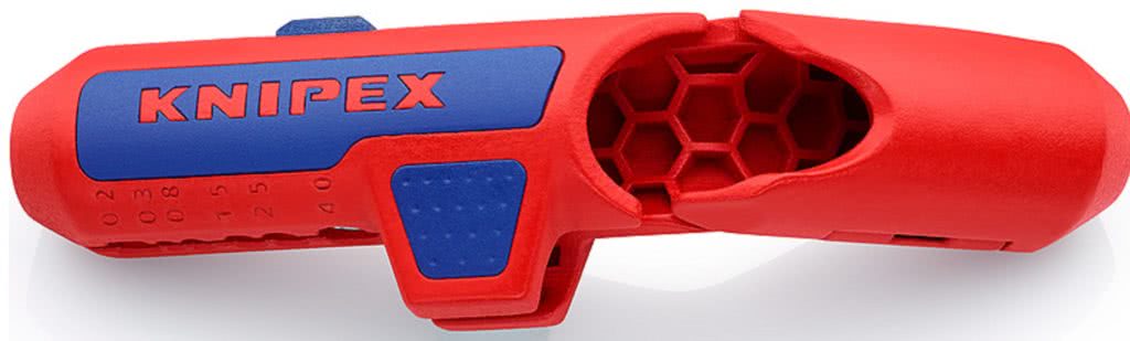 Новинка выводит операцию по снятию изоляции на принципиально новый уровень комфорта. Стриппер получил инновационный эргономичный дизайн. Края оформлены конусом не случайно. Это значительно облегчает доступ к проводам в узком пространстве. Направляющие бортики облегчают укладку для снятия изоляции.