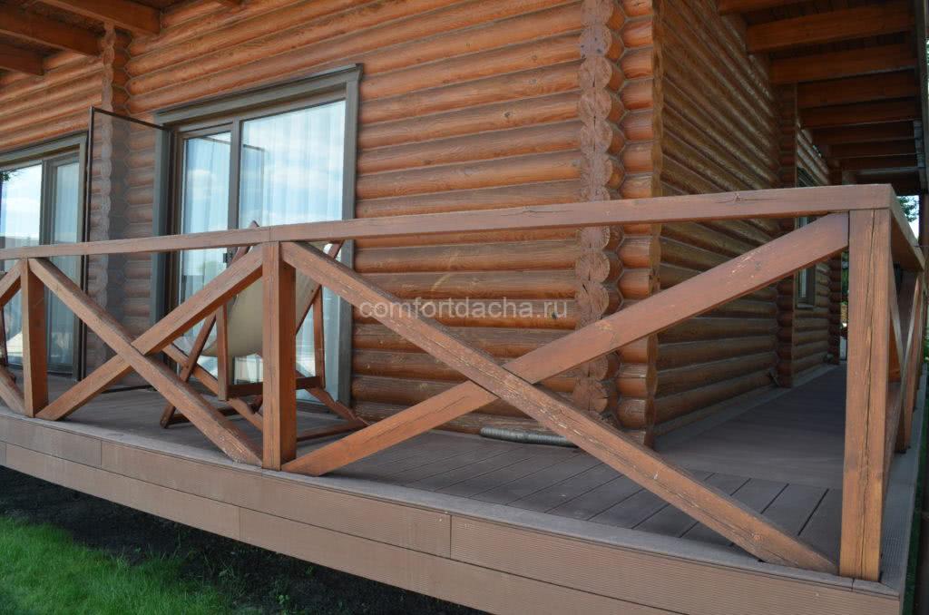 Гораздо большей популярностью пользуется у дачников ограждение террасы из дерева: доски, рейки, бревна и бруса.