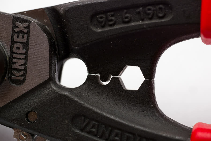 Пресс-клещи с шарнирами усиливают нажим инструмента, что позволяет облегчить процесс ручного обжима. Особым удобством отличаются приспособления с храповым механизмом. Они предотвращают разжимание инструмента до завершения процедуры.