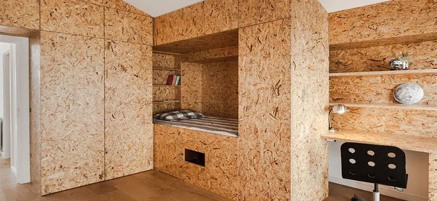 - Мебельное производство. Высококлассные материалы OSB-3, OSB-4 подходят для изготовления деталей шкафов, скамеек, стульев.