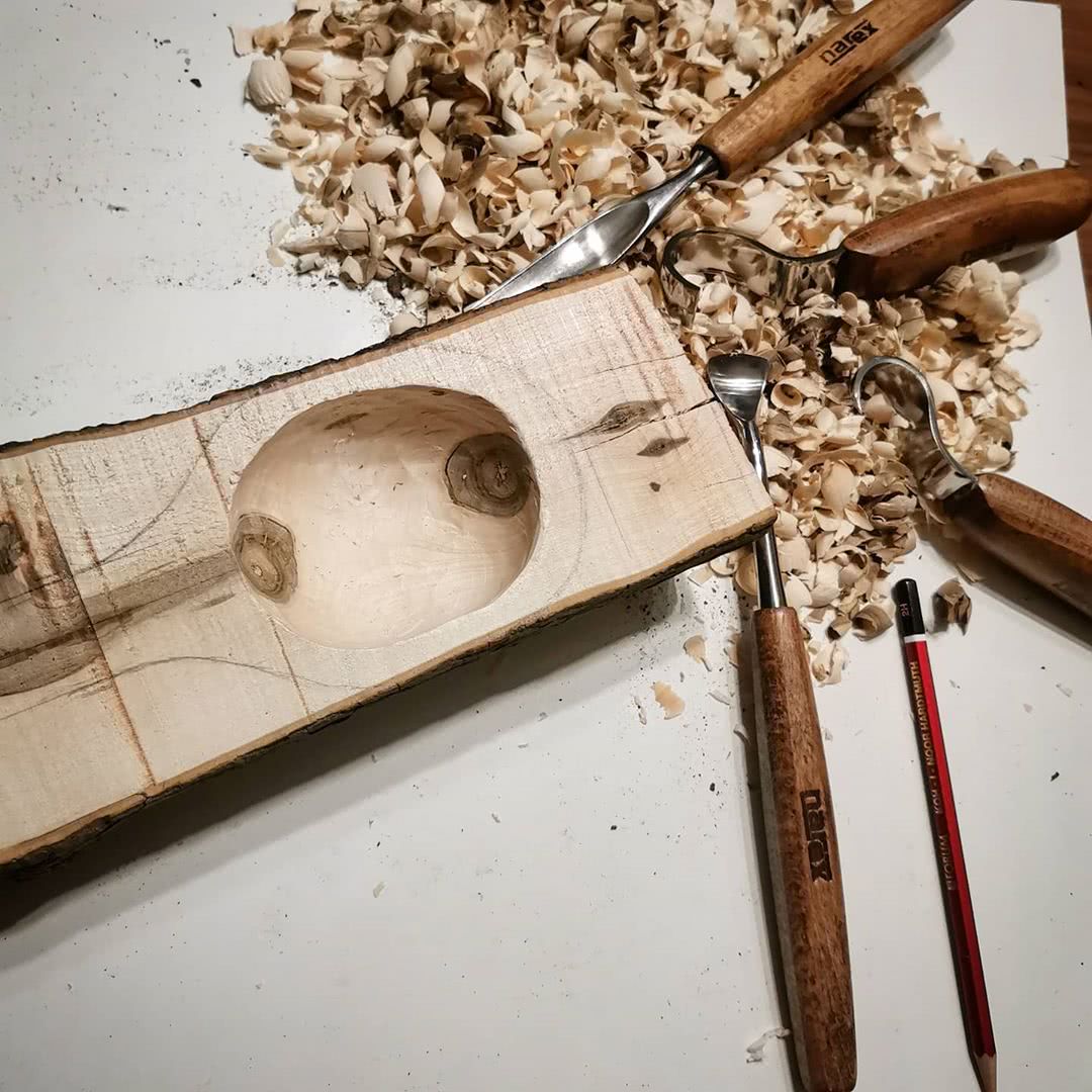 - Из деревянного щита вырезать две удерживающих пластины полукруглой формы.