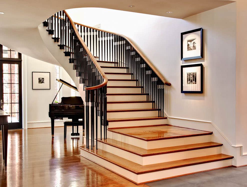 Также если мы собираемся не окрашивать дерево потом, то важно чтобы ее цвет гармонировал с интерьером (или экстерьером, если речь идет о внешней лестнице) здания. Например, может быть дешевые сосновые доски будут неуместны при роскошных перилах с позолотой