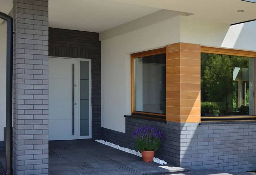 Внешне отделка из клинкера напоминает одноименный кирпич, но более легкая и тонкая. Прочный фасад с декоративной кладкой не боится пожара и влаги. Экстерьер дома смотрится роскошно и дорого. Материал выпускают как в стандартной прямоугольной форме, так и в виде квадратов. Дизайнеры экспериментируют с фактурами, создавая на стенах эффектное панно или лаконичный рисунок.