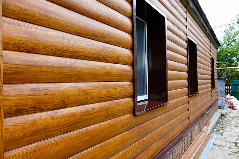 Облицовка на фасаде внешне напоминает древесные бревна. В качестве материала используют не только дерево, но и винил (ПВХ), металл. Имитация натуральной объемной фактуры придает загородному дому элементы деревенского стиля. Сырье долго сохраняет тепло, поэтому используют для улучшения микроклимата жилья.