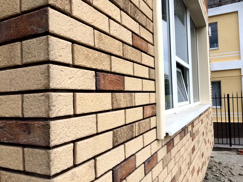 - На поверхности материала не образуются солевые разводы. С данной проблемой часто сталкиваются при отделке фасадов натуральным кирпичом, который хорошо впитывает влагу. Искусственные же аналоги защищены от появления налетов, так как имеют низкий коэффициент впитываемости.