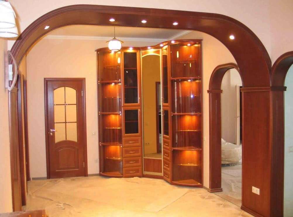 Дерево – материал, традиционно используемый для отделки любых проемов. В случае с аркой придется найти в продаже верхний элемент либо заказать изготовление в столярной мастерской.