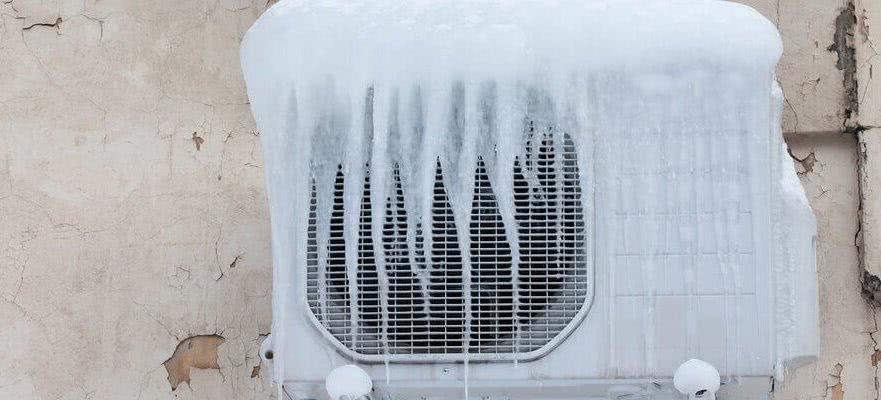 Обледеневший наружный блок сплит-системы указывает на то, что эксплуатация данного прибора откладывается до его полного освобождения из ледяного плена