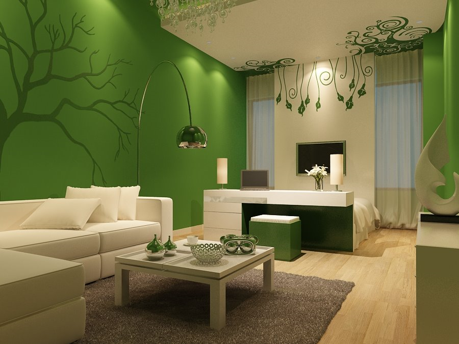 Очень важно, чтобы подобранный цвет стен органично вписывался в обстановку комнаты.