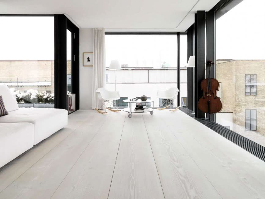 Скрыть огрехи помещения, и подчеркнуть достоинства поможет именно светлый паркет. С помощью покрытия удастся добиться такого эффекта: