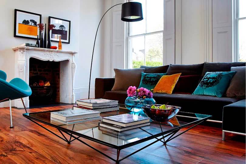Использовать паркетную доску во время обустройства гостиной можно смело, так как она отлично дополнит любое дизайнерское решение и стиль помещения