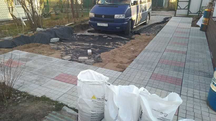 Если вам нужна небольшая площадка под одну легковую машину, и вы не хотите связываться с тяжелыми бетонными работами, а также ограничены в средствах, то такой вариант, возможно, вам подойдет.