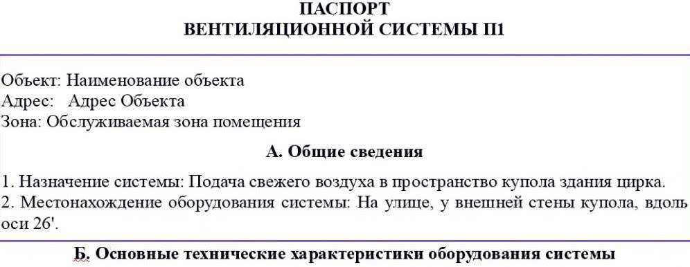 Технически грамотно оформленный паспорт на вентиляционную систему — залог эффективной и безопасной работы вентиляционной системы, а часто и самого предприятия. В нем отображается реальное состояние всего вентиляционного оборудования.