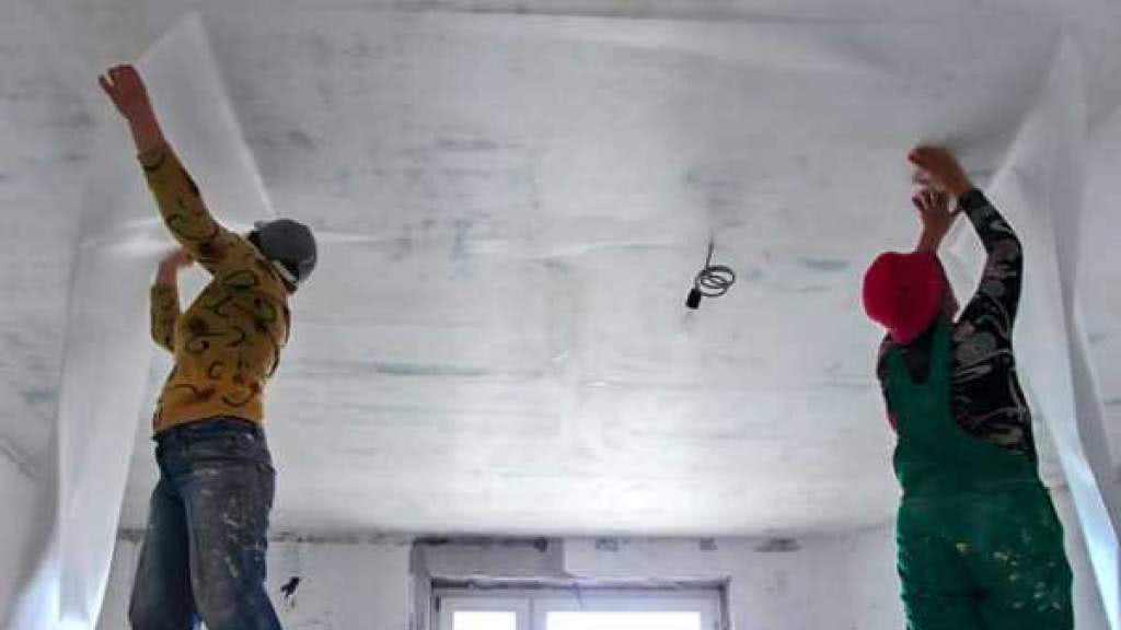 При креплении стеклохолста на потолок полотно разрезается на несколько фрагментов. Окрашивание и шпаклевание материала можно производить не ранее, чем через 48 часов. За 3–4 часа до начала работ он покрывается проникающим грунтом.