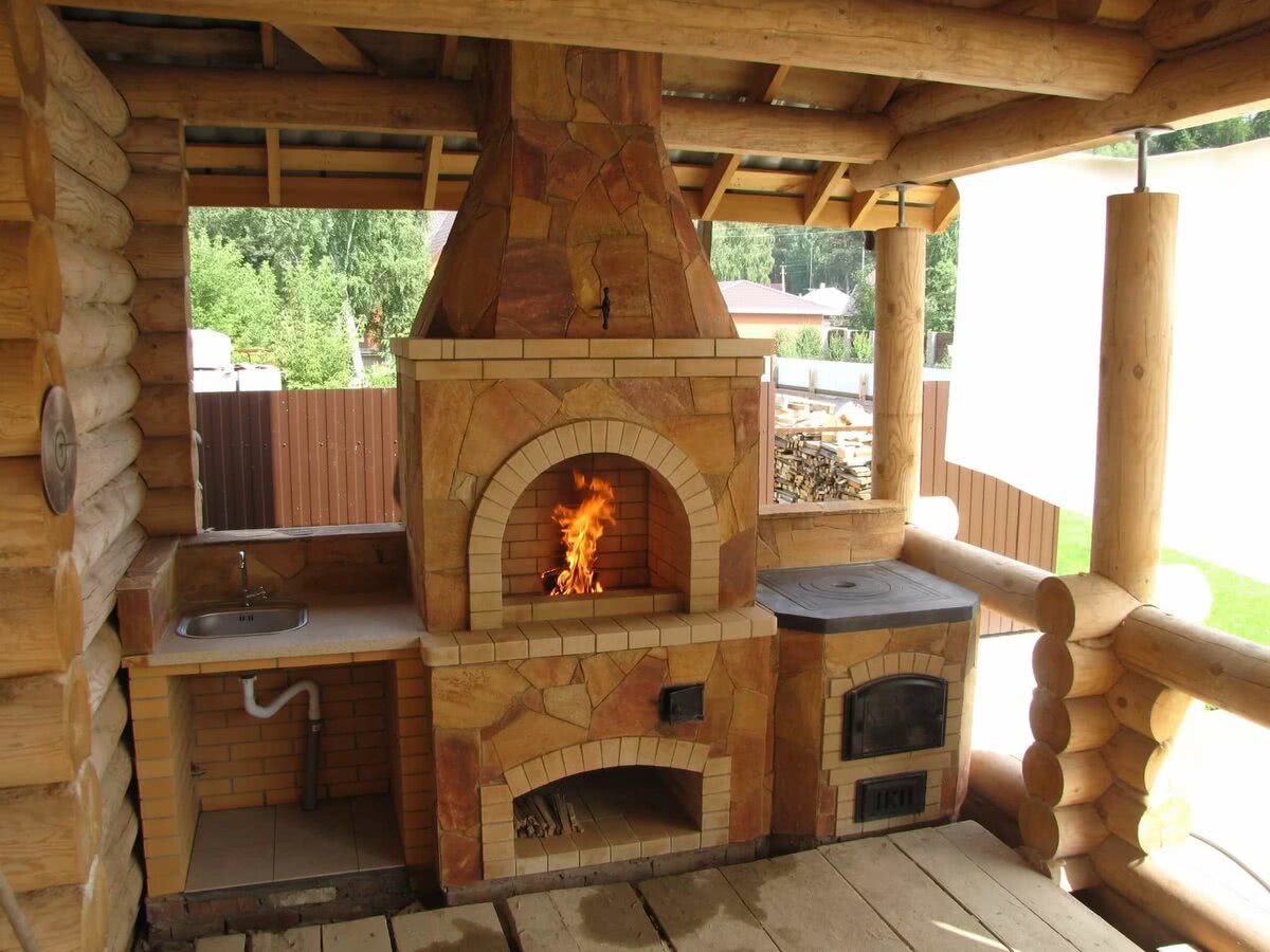 - стационарные. Сооружаются прямо в беседке или летней кухне, имеют свой собственный фундамент (из-за тяжелого веса), отличаются удобством и большими размерами. Чаще всего для их изготовления используется кирпич, камень, ковка;