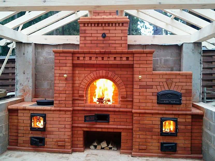 Делают в основном только в больших беседках. Они одновременно отапливают конструкцию и позволяют готовить еду. Как и в предыдущем случае могут иметь духовой шкаф, сушилку. Главное отличие данных печей в том, что дополнительно они могут иметь ещё несколько секций для жарки продуктов на углях или копчения. Естественно, сделать такую печь самостоятельно без соответствующих навыков и знаний просто невозможно. Поэтому доверяйте работы квалифицированным мастерам с большим опытом. Только так вы получите хороший результат, который всегда будет вас радовать.