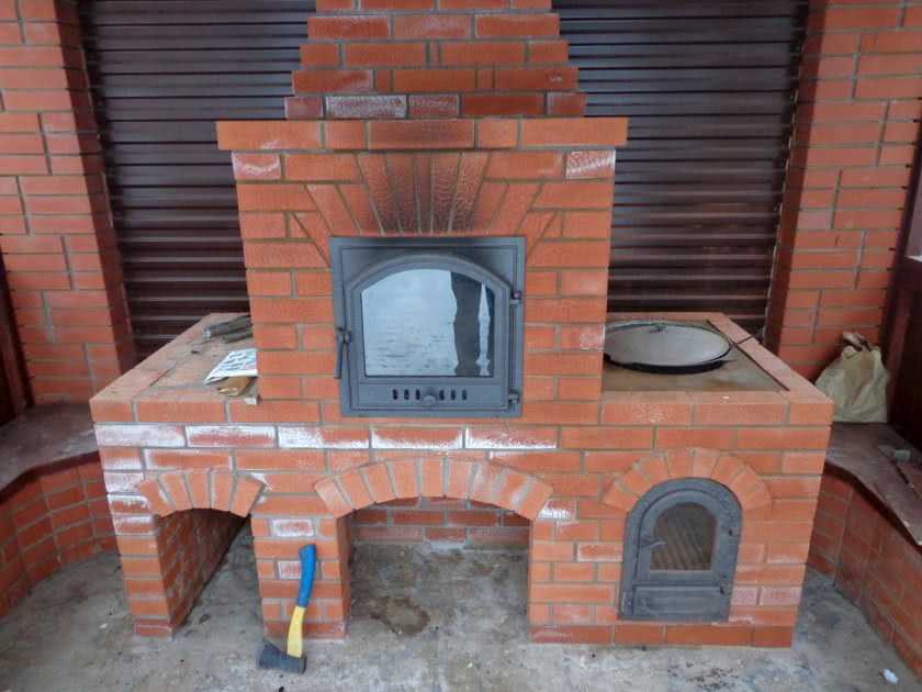 Универсальные комплексы имеют отдельные топки и выходы (плиты) под каждое приспособление, которое может теоретически использоваться при готовке. Чтобы собрать и вывести продукты горения, делается общий дымоход в виде арки. Это дорого, сложно, но оправдано в плане удобства и практичности.