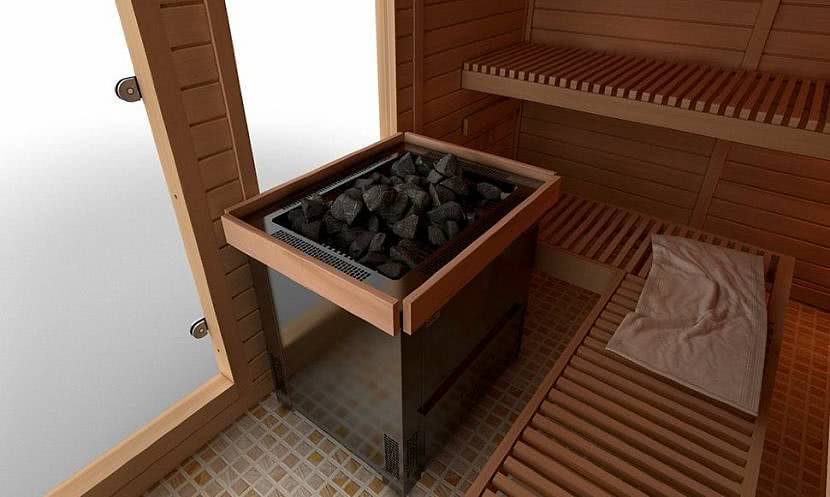 Удобное решение ‒ электрокаменка. Это отличная альтернатива дровяной печи. Не занимает много места. Дымоходная труба отсутствует. Не нужно чистить, загружать топливо. Достаточно правильно выставить температурный режим.